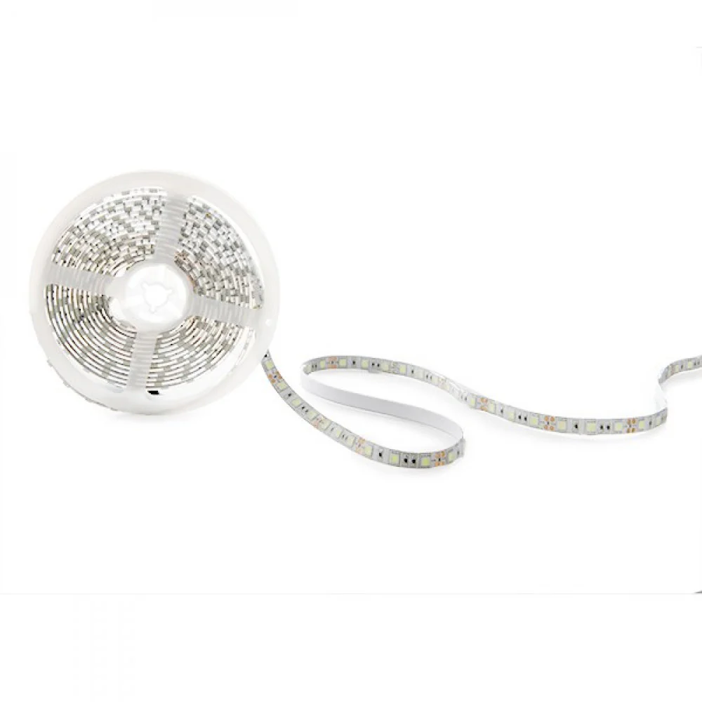 Cuenta con una eficacia de 35 Lm/W consumiendo 60W mediante 300 LEDs del tipo SMD5050 y logrando proporcionar un flujo luminoso de 2100Lm distribuidos uniformemente a lo largo de 5 metros de longitud, proporcionando 420 Lm/m con 12 W/m, obteniendo un índice de reproducción cromática de 85. Su consumo representa un valor de 60kWh/1000h, reduciendo la cantidad de energía facturada y las emisiones de gases contaminantes a la atmósfera. Esta tira puede ser alimentada por una fuente de energía eléctrica de 12VDC (Batería, fuente de alimentación, transformador o rectificador). Se puede cortar cada 3 LEDs (50mm) y tiene 60 LEDs/m, emitiendo un punto de luz cada 16mm. Acabado en color blanco construido con PCB y una cinta 3M ideal para adherirse a diferentes tipos de lugares.